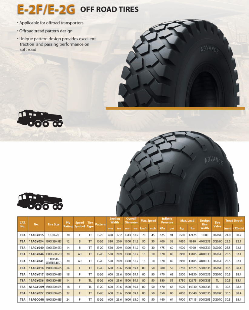 1300x530-535 12 Off-road   12.00-20 530±3.5% 1300±1.0% 4050 400 75