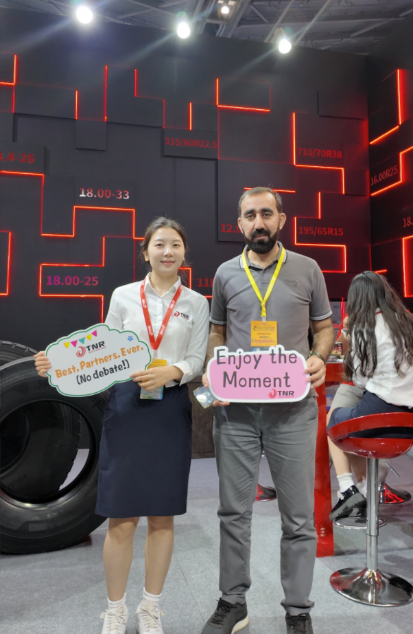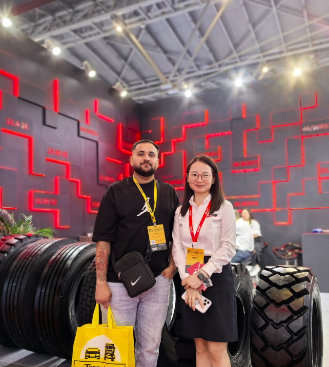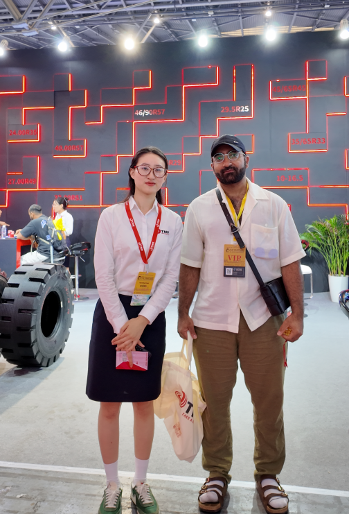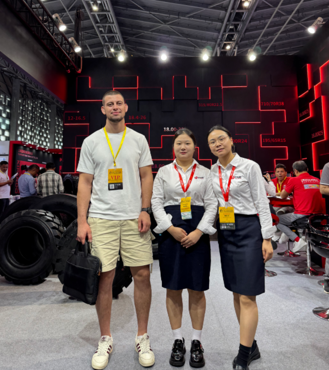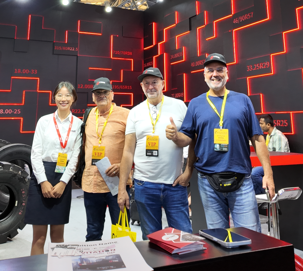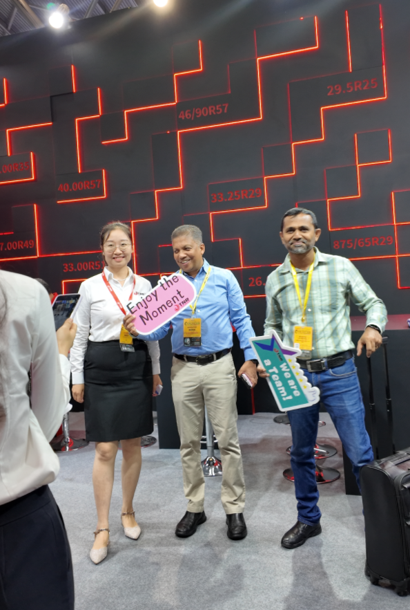 The first thing visitors noticed was the clean, professional setup. Right at the front, a clear product board, showcased our extensive range of tire specs—from skid steer tire 12-16.5 to heavy-duty 46/90R57 sizes.